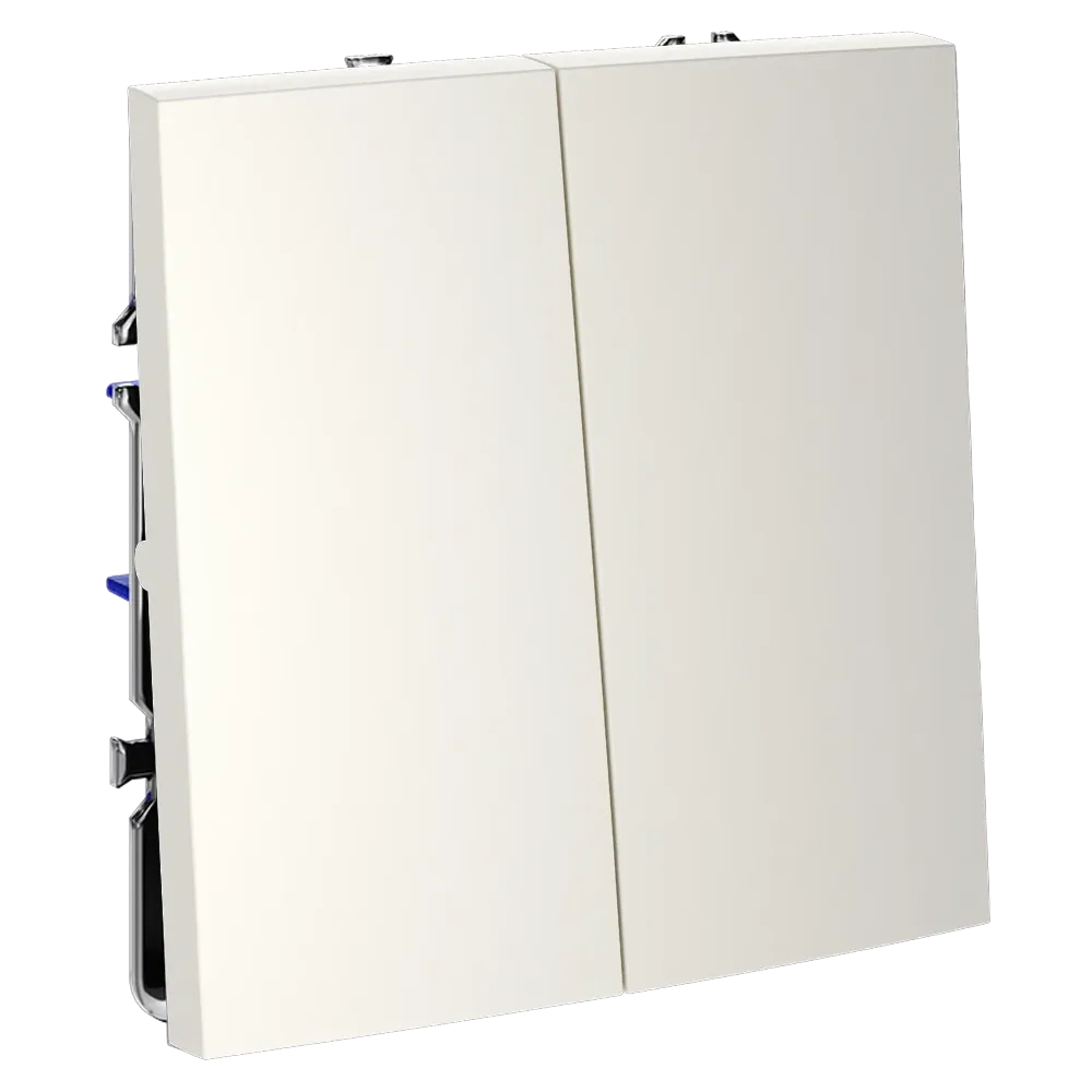 Двухклавишный выключатель VOLTUM S70 в цвете «хлопок» — это функциональное и эстетичное решение для управления двумя независимыми световыми зонами в одной точке. Идеально подходит для гостиных, спален, прихожих и кухонь, где требуется раздельное включение основного и декоративного освещения.
