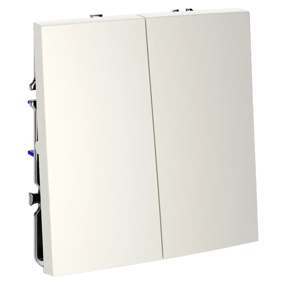 Двухклавишный выключатель самовозвратный VOLTUM S70 в цвете «хлопок» — это современное и функциональное решение для одновременного управления двумя независимыми автоматизированными системами, такими как жалюзи и рольставни, ворота и шторы, вентиляция и сигнализация. Благодаря механизму самовозврата, каждая клавиша автоматически возвращается в исходное положение после нажатия, обеспечивая импульсное (кратковременное) управление без фиксации — идеально для систем, требующих точного и безопасного сигнала.